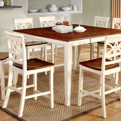This uniquely designed counter height table has functional and decorative features that put it in a class of its own.
