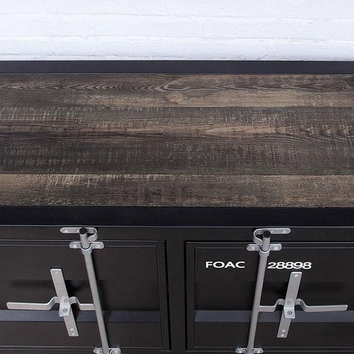 Got books? Bring them to this bookcase. Its industrial mix of dark wood and black metal brings trendsetting vibes to your home. Four sturdy shelves...
