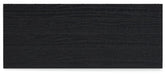 - Textured black wood stain with waxy topcoat