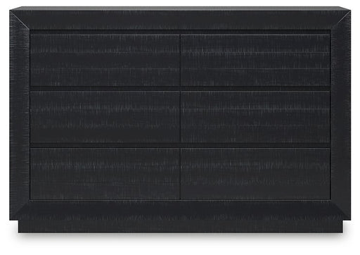 Alluring smoky gray hues create an ambiance that just feels right. This 6-drawer dresser has a charming wood-like appeal enriched by a two-tone, te...