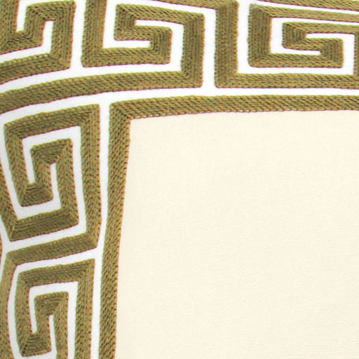 FOA WestThis square pillow features intricate floral patterns in subdued shades of green and brown on an ivory backdrop.