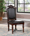 PICARDY Side Chair, 23 1/4"L X 22 3/8"W X 46 7/8"H (SEAT HT: 2 1/4", SEAT DP: 23"), 72.6lbs. A perfect fit for those looking for a traditional piece, this dining set brings the right amount of grandiose. This chair has upholstered seat and back cushions with black leatherette and nailhead trim. It shares the same faux wood carvings and metal details with the rest of the set--subdued baroque influences that make it surely stand the test of time.