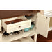 This tranistional style server is elegantly designed and can store all of your dish and glassware.