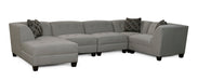 You can't miss the hip sophistication of our Miller sectional group. This sectional has an almost retro feel with its clean lines, petite scale, low back, and wooden pyramid leg. The simple tufted back and seat make a true style statement. You also have the ability to make this sectional a pit with the matching ottoman.